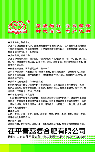 After contact with the soil, the unique factor PGA can quickly sequester the active ingredients in the fertilizer, supply nutrients in a stable and balanced crop throughout the growing season, improve fertilizer utilization, and increase nitrogen utilization by 60%. Phosphorus utilization rate 5 %, potassium utilization rate of 17% or more, the effect is obvious.